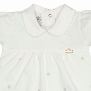 Estilo: Uma peça linda e delicada, com bordado de bolinhas coloridas, que deixarão sua bebê ainda mais estilosa.