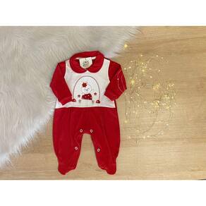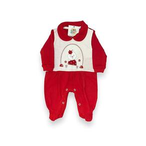 Macacão Bebê Menina Longo 100% Algodão polo Vermelho Coelha
