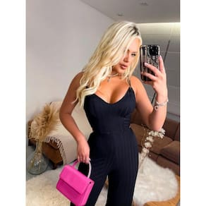 Macacão com Fenda e Bojo Efeito Modelador Canelado, com Alça Ajustável.