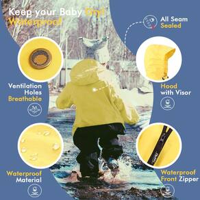 HAPIU Macacão de chuva impermeável para crianças e crianças pequenas com capuz. O que é este traje de chuva? Um traje de chuva para crianças e crianças pequenas com material e designs para garantir que as crianças se divirtam com segurança e que os pais cuidem da bagunça facilmente. Mas como este traje de chuva infantil alcança seu objetivo? Para vestir o traje de chuva. Fácil de colocar com os zíperes frontais duplos. Para brincar ao ar livre. À prova d'água para menos bagunça. Material: Nylon com revestimento de poliuretano anexado com viseira para manter a chuva longe do rosto do seu bebê. Zíperes frontais à prova d'água. Todas as costuras são seladas para garantir a impermeabilidade. Resistente reforçado com nylon extra pesado preto para assento e joelhos. Não precisa se preocupar com rasgos do material quando as crianças brincam em pedras ou galhos. Ajuste personalizado. Punhos elásticos de pulso e tornozelo se encaixam sobre luvas e botas. As tiras dos tornozelos podem ser colocadas nas botas para fixar a perna. Quente e seco por dentro. Adicione dois orifícios de ventilação para evitar que a água a vapor dentro do traje molhe as roupas e mantenha seu bebê aquecido e seco. Segurança Cor brilhante fácil de encontrar, localize rapidamente seu bebê com um olhar. O crachá de criança em idade pré-escolar dentro do traje de chuva seria útil durante uma emergência. Para tirar depois de jogar. Fácil de tirar com os zíperes frontais duplos. Você pode tirar o traje de chuva sujo no quintal, então seu amigo lamacento está pronto para ir. Não há necessidade de bagunça em casa. Para limpar com o material de nylon, sujeira e lama, enxágue facilmente deste traje de chuva para crianças. Vem com uma bolsa de armazenamento de nylon para facilitar o armazenamento. - [Impermeável]: 10.000 mm Material de classificação à prova d'água de nylon com revestimento de poliuretano. Todas as costuras seladas, zíperes frontais duplos à prova d'água e um capuz elástico anexado com viseira, este traje de chuva infantil mantém a lama e a água fora de onde pertencem! Chega de perder tempo procurando por jaqueta de chuva infantil ou capa de chuva infantil - [Resistente]: Reforçado com nylon extra pesado preto para assento e joelhos. Não precisa se preocupar com rasgos do material quando as crianças brincam em pedras ou galhos. Roupas de chuva perfeitas para crianças - [Ajuste personalizado]: punhos elásticos de pulso e tornozelo se encaixam sobre luvas e botas. Além disso, as tiras dos tornozelos podem ser colocadas nas botas para fixar a perna. Bom traje de chuva para meninas e meninos. Observação: É projetado para ser solto para acomodar roupas por baixo, liberdade de movimento e espaço para crescimento. Meça antes de fazer o pedido de acordo com a tabela de tamanhos. - [Fácil de colocar ou tirar e lavar]: zíperes frontais duplos para trocas rápidas antes e depois de jogar. Com o material de nylon, a sujeira e a lama são facilmente lavadas deste traje de chuva para meninos - [Seguro]: Sem PVC e sem BPA. O crachá para crianças em idade pré-escolar dentro deste equipamento de chuva para crianças seria útil durante uma emergência. Também vem com uma bolsa de armazenamento de nylon. Dois orifícios de ventilação para evitar que a água a vapor molhe seu bebê.
