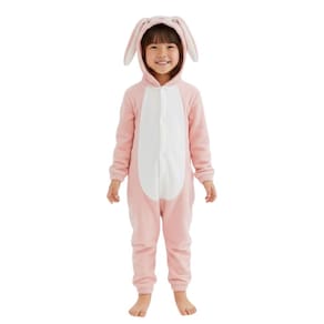 Macacão infantil em fleece plush, ideal para manter a criança aquecida e confortável. Possui capuz com detalhe de coelho, toque macio e acabamento delicado. Modelo prático, confortável e perfeito para uso em dias frios, momentos de descanso ou fantasias temáticas. O fechamento facilita o vestir e garante maior conforto durante o uso.