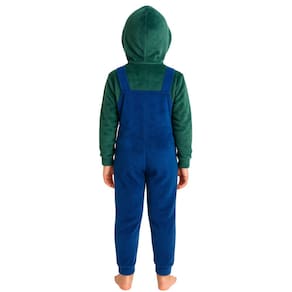 Com design inspirado no famoso personagem Luigi, este macacão traz uma combinação clássica e vibrante de cores azul e verde, detalhes como suspensórios decorativos com botões amarelos e o icônico boné estilizado em formato de capuz com o símbolo "L", tornando-o ideal para festas temáticas, fantasia ou mesmo para um pijama super estiloso e confortável.