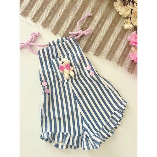 O macaquinho estampa listras jeans com esse lindo ursinho na frente trasendo toda delicadesa e fofura de uma criança é perfeito para a pequena arrasar com muito estilo em qualquer lugar que for.