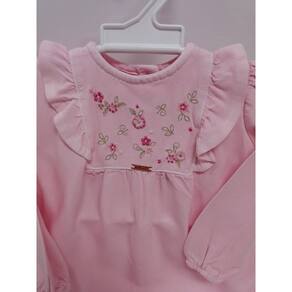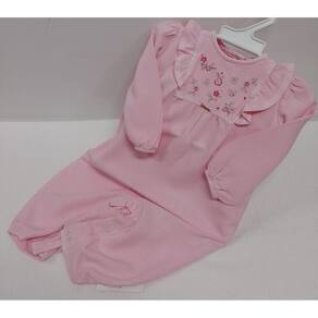 - Macacão longo em malha viscose, super macio e confortável. Detalhe frontal em jeans leve com bordados florais, babadinhos e plaquinha da marca aplicada que dão um charme todo especial a peça. Punhos com elástico que facilita ao vestir. Abertura nas costas até o meio e entre pernas por botões de pressão. Simplesmente um encanto!