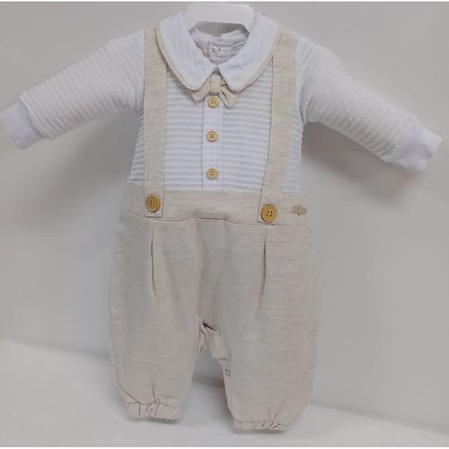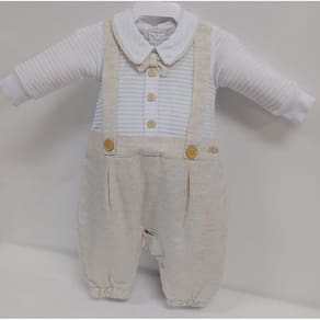 Macacão Longo Suspensório Linho Luxo Bebê Menino Lessa