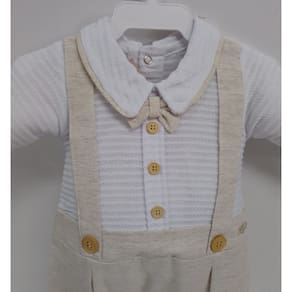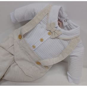 Macacão Longo Suspensório Linho Luxo Bebê Menino Lessa B9061 - M - Branco