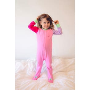 Macacão Magnético Rosa, mangas lavanda e pink e detalhes menta - Recém nascido - Welpie
