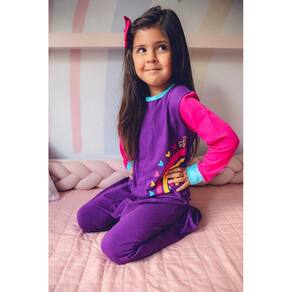 Macacão Magnético Roxo, detalhes pink e azul anil com estampa arco-íris - 24 meses (2 a 3 anos)