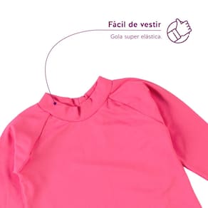 O macacao praia bebê e infantil rosa chiclete neon, além de possuir proteção UV 50+, por ser longo, protege praticamente todo o corpinho da bebê. Seu design inteligente conta gola veste fácil com super elasticidade, barra dos punhos e tornozelos extensíveis, permitindo o uso prolongado à medida que a bebê cresce, proporcionando conforto e praticidade. É confeccionado em poliamida super macio, não esquenta, seca rápido e mantém a temperatura corporal. Além disso, os botões na parte inferior facilitam a troca de fraldas. Ideal para aproveitar os dias de praia ou piscina com proteção e estilo.