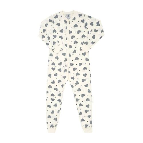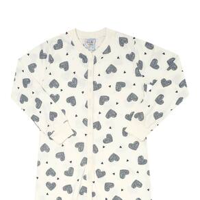 A hora do soninho com muito estilo e conforto! Com abertura em zíper frontal o macacão de manga longa rotativo de corações na cor off white é confeccionado em moletinho, permitindo que a noite da sua fofurinha se torne ainda mais aconchegante e quentinha. Partiu uma pipoquinha antes de dormir?! \n
