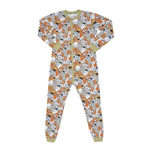 O pijama em modelo macação apresenta zíper frontal e é totalmente confeccionado em moletinho. A estampa rotativa de fantasmas e seres divertidos na cor pistache é o charme todo da peça. O pijama ideal para noites quentinhas e divertida dos meninos!\n