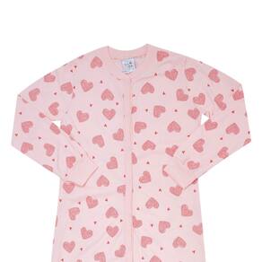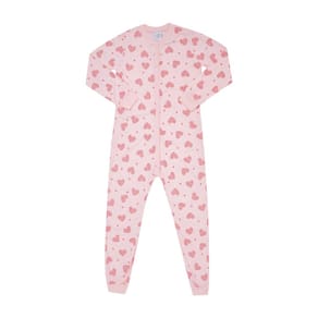 A hora do soninho com muito estilo e conforto! Com abertura em zíper frontal o macacão de manga longa rotativo de corações na cor rosê é confeccionado em moletinho, permitindo que a noite da sua fofurinha se torne ainda mais aconchegante e quentinha. Partiu uma pipoquinha antes de dormir?! \n