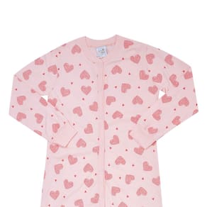 A hora do soninho com muito estilo e conforto! Com abertura em zíper frontal o macacão de manga longa rotativo de corações na cor rosê é confeccionado em moletinho, permitindo que a noite da sua garotinha se torne ainda mais aconchegante e quentinha. Partiu uma pipoquinha antes de dormir?! \n