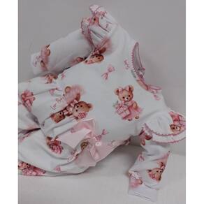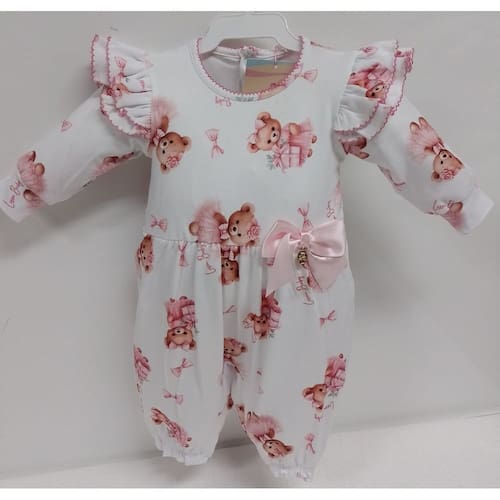 Características do Produto: - MACACÃO TODO EM SUEDINE COM ELASTANO, SUPER MACIO E CONFORTÁVEL. DETALHE ESTAMPADO DE URSINHOS EM TODO ELE QUE DEIXA A PEÇA SUPER CHARMOSA. NOS OMBROS COM BABADINHOS. DETALHE DE LAÇO APLICADO E MEDALHINHA NA CINTURA, UM ENCANTO! ABERTURAS POR BOTÕES DE PRESSÃO NAS COSTAS ATÉ O MEIO E ENTRE PERNAS. - FAIXA DE CABELO MARAVILHOSA COM ESTAMPA COMBINANDO AO MACACÃO E LACINHO.