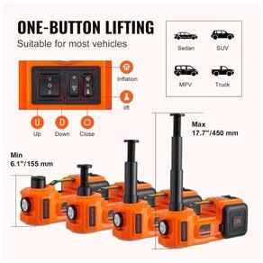 Este kit de macaco para carro elétrico é um salva vidas durante emergências na estrada e pode ser para reparos de garagem em casa. Ele combina com todos os automóveis, sedãs, SUVs, caminhões ou veículos que se adequem à sua capacidade.