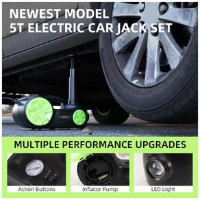 Este macaco elétrico possui dois motores que elevam veículos de até 5 toneladas em apenas 60 segundos! Com altura de até 53,1 cm, superando a concorrência. Operação simples com um toque, permitindo até iniciantes trocarem pneus sem esforço. Design portátil e seguro, combinando corpo leve de ABS com base de alumínio antiderrapante para estabilidade. Possui travamento automático de altura e proteção contra sobrecarga. Luzes de LED à prova d'água garantem operação segura em emergências noturnas e chuvosas. Kit completo de emergência, incluindo caixa reflexiva com martelo de segurança, fusíveis sobressalentes, soquetes, luvas, etc. Ideal para emergências na estrada, permitindo a troca rápida de pneus ou o manuseio de quebras com todas as ferramentas organizadas e acessíveis. Sistema eficiente de inflação de pneus, com bomba de ar que infla pneus de carro para 35 PSI em menos de 2 minutos. Manômetro em tempo real garante monitoramento preciso. Inclui 3 bicos para carros, bicicletas, motocicletas e equipamentos esportivos. Confiabilidade certificada, com 3 fusíveis sobressalentes e Certificação TUV para durabilidade e segurança. Testado rigorosamente para suportar 50.000 ciclos de elevação.