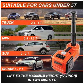 Macaco jacaré hidráulico elétrico multifuncional Nosso macaco hidráulico possui uma bomba infladora embutida e luz LED, além de um martelo de segurança extra. Alta estabilidade e qualidade premium, uma solução fácil para emergências de veículos, pneus. Faixa de altura de elevação 15, a . Potente e eficiente capacidade de elevação de 5 T, pode levantar o carro em menos de 2 minutos, perfeito para troca e reparo de pneus na estrada. Além disso, é totalmente à prova de água, para que você possa usá lo mesmo em dias de chuva. Giro de alto impacto em 360 graus com torque poderoso, afrouxe, aperte cada porca de olhal em 5 segundos. LED embutido e fonte de alimentação bidirecional A conveniente luz LED flash embutida permite a operação à noite. Além disso, nosso conector para carro pode ser alimentado por isqueiro ou bateria de carro. Estabilidade e segurança estrutura estável e segura, o macaco jacaré parará de funcionar quando atingir a limitação de altura . Bomba de insuflação com pressão máxima de 150 psi, fluxo de ar 16 kg, min. Caixa de ferramentas profissional todas as tomadas elétricas estão equipadas com uma mala sólida, que também pode funcionar como sinalização de emergência quando você precisar. Especificação do macaco jacaré. Tensão de entrada 12 V DC. Corrente de taxa 13A. Potência nominal 150 W. Carga máxima 5 T. Faixa de altura de elevação 15, a . Comprimento do cabo de alimentação 4 m. Bomba infladora elétrica Pressão máxima 150psi. Fluxo de ar 16 kg, min. Corrente máxima 10. Comprimento da mangueira de ar . Comprimento da linha de energia 3,5 m. Especificações da chave Tensão de operação 12V DC máx. Corrente 13A. Fusível 15A. Potência nominal 80 W. Potência máx. Torque 480 NM. O pacote inclui 1 Macaco Jacaré Hidráulico Elétrico para Carro. 1 Plugue para isqueiro do carro 3,5 m. 1 Plugue para bateria de carro. 2 Fusíveis de reposição 12A. 1 par de Luvas. 1 Martelo de Segurança. Aviso Por favor, leia o manual cuidadosamente antes de usar Marca: Não Informado