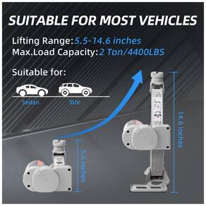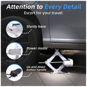 Construção Estável: Este macaco de chão possui uma base triangular ampliada, haste de parafuso reforçada e aço laminado a frio, que não apenas aumentam a estabilidade e capacidade de carga, mas também evitam efetivamente rasgos ou torções. Garantia de Segurança: Apresenta um design de travamento automático para evitar quedas repentinas e para a parada automática na altura máxima. Disjuntores embutidos e fusíveis substituíveis garantem uma elevação segura e confiável tanto para o usuário quanto para o veículo. Elevação com um Toque: Este macaco tipo tesoura tem capacidade de elevação de 2 toneladas e vem equipado com dois motores embutidos. Pode atingir uma altura máxima de 37cm em aproximadamente 60 segundos, facilitando a elevação da maioria dos veículos com menos de 2 toneladas. Economize Tempo e Esforço: Este macaco elétrico para carros vem com um controle remoto - basta pressionar um botão, sem esforço manual necessário. Diga adeus ao levantamento manual e aproveite trocas de pneus mais rápidas e fáceis. Uso em Diversos Cenários: Este macaco para carros possui luzes LED brilhantes, design à prova d'água e forte potência de elevação, tornando as trocas de pneus seguras e visíveis mesmo no escuro ou em condições de chuva.