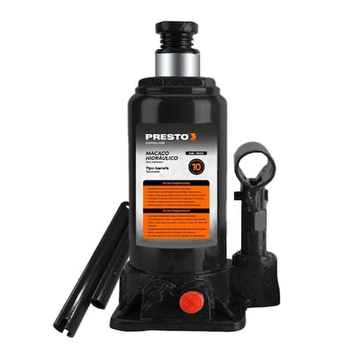 O Macaco Hidráulico Tipo Garrafa 10 toneladas da Presto é ideal para levantar veículos de porte médio com segurança e eficiência. Compacto e robusto, é essencial para oficinas mecânicas, borracharias e garagens, oferecendo uma solução confiável para diversas aplicações automotivas e industriais.