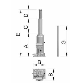 Macaco Hidráulico Garrafa 20 Ton Bovenau- Alavanca inclusa- Ideal para elevação de veículos ou cargas de acordo com sua capacidade- Possui válvula de sobrecarga que evita a elevação superior a capacidade máxima- Possui fuso com rosca que permite maior elevação e facilita o ajuste na elevação- Recomenda-se usar, armazenar e transportar somente na posição vertical para evitar vazamento de óleo- Capacidade de carga: 20 Ton- A: Capacidade de construção: 244 mm;- B: Dimensões da base: 155x169 mm;- C: Curso de elevação hidráulica: 145 mm;- D: Curso de fuso: 60 mm;- E: Altura total: 449 mm;- F: Diâmentro da cabeça de apoio: 46mm;- G: Comprimento da alavanca: 420 mm- Peso(com alavanca): 11 Kg