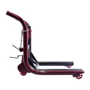 O acionamento da bomba hidráulica se dá por pedal, deixando as duas mãos livres para empurrar e manobrar o equipamento;
