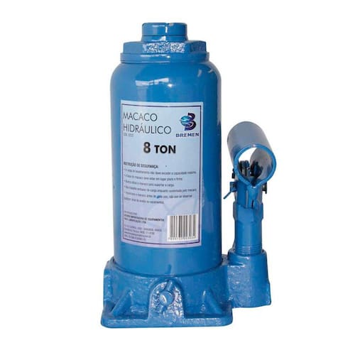 Macaco hidráulico manual veicular tipo garrafa com capacidade 8 toneladas, desenvolvida em aço de qualidade e resistente. Possui um pistão hidráulico e um fuso manual de ajuste. Com um estagio. Excelente para movimentação de cargas.