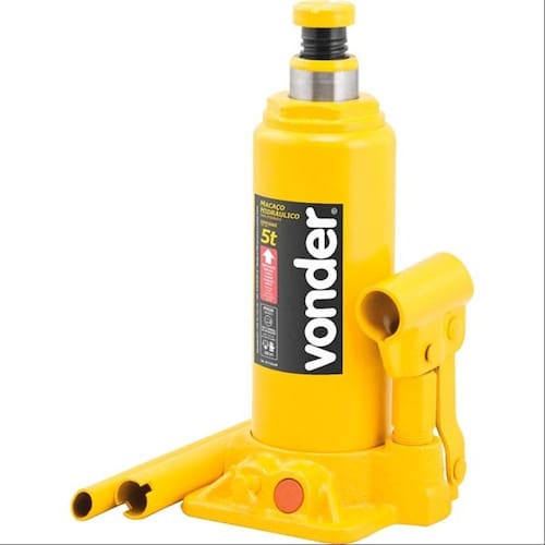 Macaco Hidráulico Tipo Garrafa de 5 Toneladas VonderCódigo do produto: 51784Descrição:Macaco Hidráulico Tipo Garrafa de 5 Toneladas Vonder.Indicado para elevação de veículos ou cargas de acordo com sua capacidadePossui válvula de segurança para evitar elevação superior à sua capacidade, cabo dividido em 2 partes que facilita seu armazenamento e fuso de elevação com rosca que proporciona maior elevação e facilita o ajuste no momento da aplicação- Informações Técnicas:Capacidade: 5 ToneladasAltura mínima: 216mmCurso do pistão: 127mmCurso do fuso: 70mmAltura máxima: 413mmDiâmetro do fuso: 30mmDimensões da base: 115mm x 114mm