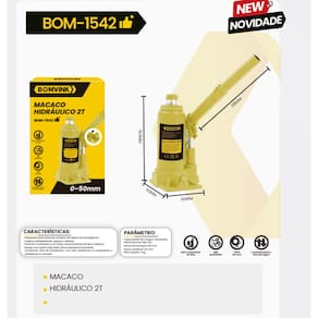 É fabricado em ferro, o que o torna resistente e ideal para a troca de pneus e manutenção do seu veículo, permitindo que este seja elevado com segurança e facilidade. Além de ser pequeno e compacto, ocupando pouco espaço no veículo.