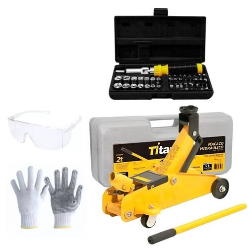 Macaco Hidráulico Tipo Jaguaré 2 Ton + Jogo De Chaves 40 Pçs