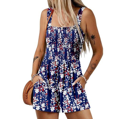 Dokotoo Macacões femininos de verão para mulheres, macacões grandes, pernas largas, soltos, sem mangas, macacão de calça curta com bolsos 2024, roupas estampadas na moda, azul, G