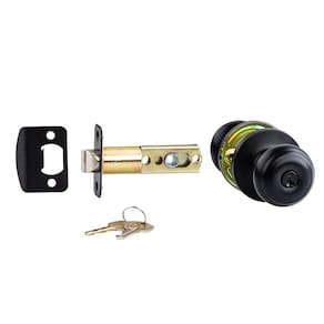 Amazon Basics Maçaneta externa com fechadura, clássica, preto fosco - Corpo de latão; estrutura interna de aço - Trava ajustável de 60 a 70 mm - Inclui duas (2) chaves de latão, chaveta KW1, placa frontal de aço arredondada e parafuso de trava de liga de zinco - Instruções de instalação detalhadas incluídas - Apoiado por uma garantia limitada de 1 ano da Amazon Basics - Serve para todas as portas de 3,5 a 3,5 cm de espessura - Furo de montagem do corpo de bloqueio 5.1-45.7 cm (54 mm) de diâmetro. - Furo de montagem da trava 1" (25 mm) de diâmetro.