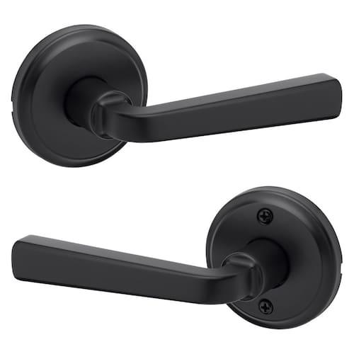 Kwikset Trafford Maçaneta de porta de passagem interna, alavanca para portas de armário e corredor, alavanca reversível sem trava, preto fosco, com proteção Microban