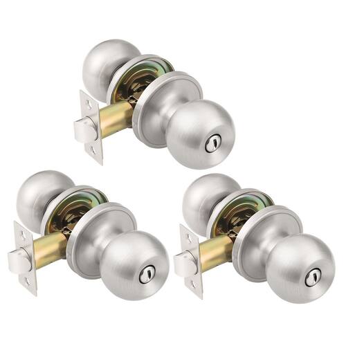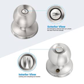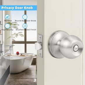 KNOBWELL A maçaneta de privacidade é adequada para portas internas como portas de quarto ou banheiro, onde não é necessária uma função de bloqueio de privacidade. O puxador interno vem com um giro de polegar que permite que a porta seja trancada. Desbloqueado do lado de fora por uma liberação de emergência, uma chave de fenda ou uma moeda. A maçaneta interna da porta é feita de aço inoxidável, de modo que tem uma construção robusta e é durável. Adicionar o acabamento de níquel escovado dará uma atmosfera de alta qualidade à sua casa. Esta maçaneta de porta de privacidade é reversível, serve para portas destros e canhotos. Um design de trava ajustável serve para quase todas as portas padrão. Fácil de instalar todos os acessórios em minutos apenas com uma chave de fenda. - Característica da maçaneta da porta de privacidade: a maçaneta da porta pode ser travada dentro e aberta do lado de fora em caso de emergência SEM chaves. Use-o para seus quartos de hóspedes, quartos, banheiros, portas de bloqueio interior e outras necessidades de privacidade; Material: Aço inoxidável; Cor do acabamento: Níquel escovado. - Tamanho único: Trava de porta ajustável: 2-3/20.3 cm ou 2-3/10.2 cm (60 mm ou 70 mm); Esta maçaneta de porta de níquel escovado serve para portas de 35 mm a 45 mm; reversível para portas canhotas e destros. Aviso: A placa de trava não é removível. - Qualidade durável: O aço sólido e aço inoxidável, acabamento liso, aparência polida e maçaneta de porta substancial e fácil de segurar elevarão sutilmente e melhorarão áreas comerciais ou residências. - Design de botão de bola redonda de tamanho adequado: Diâmetro do botão: 2,2" (57 mm). Diâmetro da roseta: 2,56" (65 mm). Não é apenas uma maçaneta de porta, é uma peça de destaque. Estes lindos puxadores sem flanges salientes, parafusos ou bordas ásperas garantem uma operação completamente segura e fácil, certamente adicionarão um toque de sofisticação à sua casa. - Instalação Esay: Todos os acessórios e instruções de instalação detalhadas incluídos. Instale seu conjunto de botões em um piscar de olhos. Tudo o que você precisa é de uma porta e um conjunto de ferramentas! Não há necessidade de encaixes de porta profissionais, você pode fazer isso sozinho! Lembrete: os parafusos longos vêm pré-instalados na maçaneta da porta. Remova-os antes da instalação.