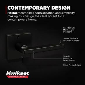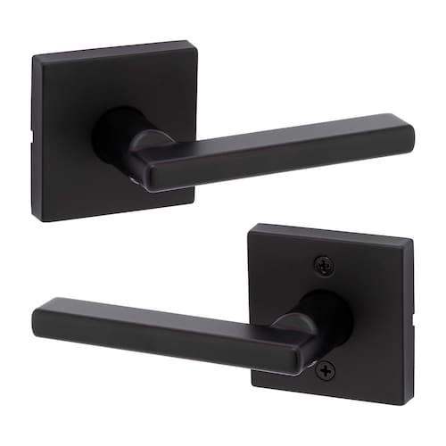 Kwikset Maçaneta de porta de passagem interior Halifax, alavanca para portas de armário e corredor, alavanca reversível sem trava, preto fosco, com proteção Microban, rosa quadrada