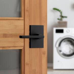 Kwikset Maçaneta de porta de passagem interna Halifax, alavanca para portas de armário e corredor, alavanca reversível sem trava, preto fosco, com proteção Microban