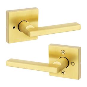 Kwikset Maçaneta de porta de privacidade interior Halifax com fechadura, maçaneta de porta para banheiro e quarto, alavanca de porta reversível com botão sem chave de latão acetinado com proteção