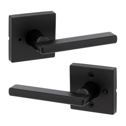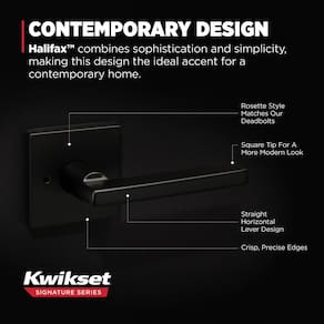 Kwikset Maçaneta de porta de privacidade interior Halifax com fechadura, maçaneta de porta para banheiro e quarto, preto fosco reversível alavanca de bloqueio de botão sem chave, com proteção