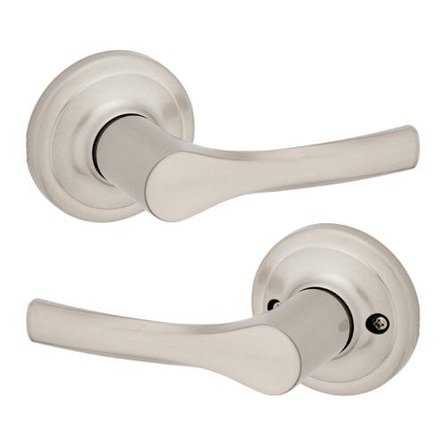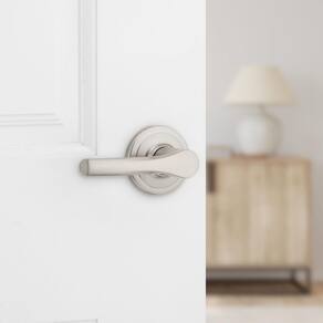 Kwikset Maçaneta de porta de passagem interna Henley, alavanca para portas de armário e corredor, alavanca reversível sem trava, níquel acetinado, com proteção Microban