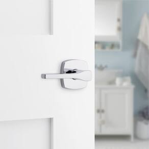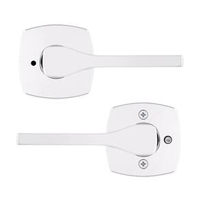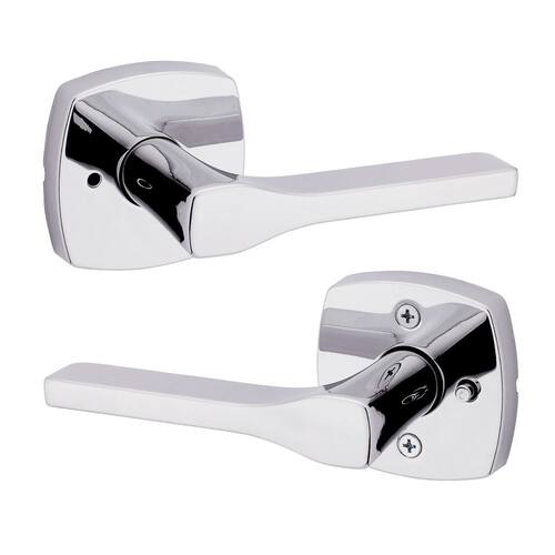 Alça de porta interna Kwikset Tripoli Lever com fechadura, alavanca de porta para banheiro e quarto, fechadura giratória reversível sem chave cromada polida