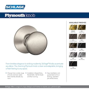 Schlage Maçaneta F10 PLY 626 Plymouth, fechadura de passagem de corredor e armário, cromado acetinado