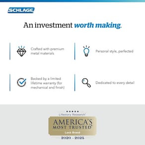 GARANTIA CONFIÁVEL: as fechaduras Schlage contam com uma garantia mecânica e de acabamento vitalícia limitada e uma garantia eletrônica de 3 anos; consulte a garantia Schlage para obter detalhes completos