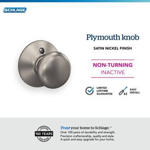 Maçaneta Schlage F170 PLY 619 Plymouth, maçaneta fictícia de um lado que não gira, níquel acetinado