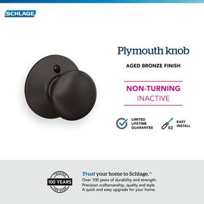 Schlage Maçaneta de porta F170 PLY 716 Plymouth, maçaneta sem giro de um lado, bronze envelhecido