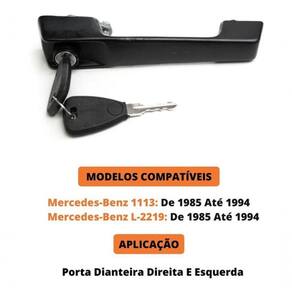 Maçaneta Externa Porta Diant Dir/esq Mercedes 1113 L-2219 [f103] CONTEÚDO DA EMBALAGEM ------------------------------------------------- - Maçaneta Externa Da Porta Esquerda Com Chave - Em Metal - Preta VEÍCULOS APLICÁVEIS