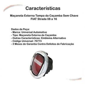 Maçaneta Externa Tampa Da Caçamba Sem Chave Strada 08 A 16 [f103] CONTEÚDO DA EMBALAGEM ------------------------------------------------- - Maçaneta Externa (Puxador) Da Tampa Da Caçamba VEÍCULOS APLICÁVEIS