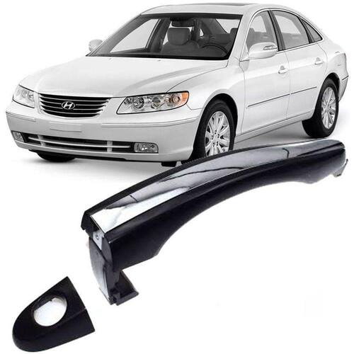 Maçaneta Puxador externo da portaDianteira, lado Esquerdo Motorista Preta com friso cromado, com furo para chaveAplicação da Hyundai:Azera 3.3 V6 24v à Gasolina - 2007, 2008, 2009, 2010, 2011Código: 826513L000 / 82651-3L000 Peça nova, importada, similar à originalGarantia de 3 meses