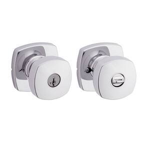 Kwikset Arroyo Maçaneta de porta de entrada com fechadura e chave, maçaneta externa com chave segura, entrada frontal e quarto, cromo polido, segurança SmartKey Rekey resistente a picaretas