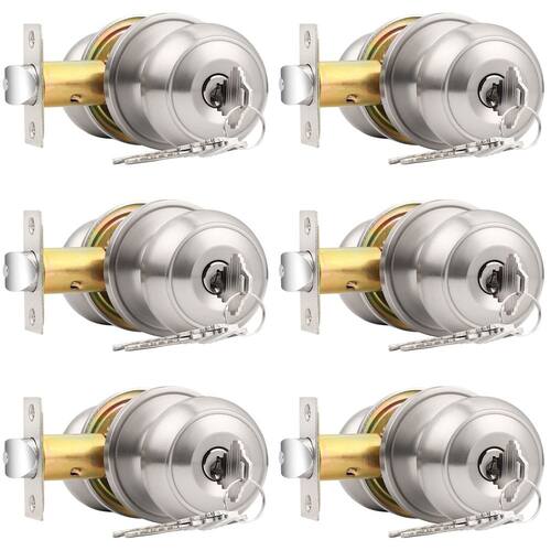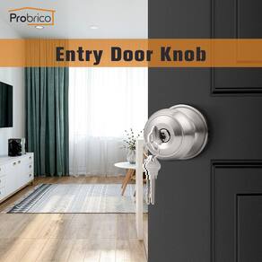 Especificações: Parte de trás: Ajustável para 60 mm ou 70 mm Espessura da porta: 1-3/20.3 cm ou 1-3/10.2 cm (35 mm-45 mm) Entrega: Esquerda, Direita, Reversível Diâmetro do botão: 5,7 cm (57 mm) Diâmetro da roseta: 6,5 cm (65 mm) Função de privacidade: Os conjuntos de maçanetas de porta de privacidade Probrico são trancados pelo interior com um giro de polegar, desbloqueados com um pequeno orifício de pino/moeda do lado de fora. Os puxadores de privacidade são ideais para banheiros, quartos ou qualquer lugar em que uma porta de bloqueio seja desejada, mas um cilindro com chave não é necessário. Fácil de instalar: A instalação é fácil, tudo o que você precisa é de uma chave de fenda e um pouco de tempo. Este conjunto é projetado para caber em portas de preparação padrão e a maioria das instalações deve levar menos de uma hora. Alta qualidade: Certificação ANSI Grau 3 que indica excelente desempenho em uma variedade de aplicações residenciais. Este produto é feito de materiais de alta qualidade para lhe dar segurança excepcional - Confirme com ANSI Grau 3, excede 200.000 ciclos; cilindro de latão resistente a palhetas de 5 pinos, chave de latão niquelado. Resistente ao desgaste e à corrosão - Acabamento de níquel escovado: anti-impressão digital, mais atraente, durável e livre de ferrugem; alça esférica moderna, sem bordas afiadas, arredondada sem machucar as mãos - Maçaneta de porta com chave de entrada com função de trava e chave: utilizado em portas externas onde é necessária entrada com chave e segurança; todo o pacote combo terá a mesma chave - As travas têm um assento traseiro ajustável de 2-3/20.3 cm a 2-3/10.2 cm para caber em todos os preparativos de porta padrão: Serve para espessura da porta: 35 mm a 45 mm); Reforçar a trava prolonga efetivamente a vida útil da fechadura da porta. Ele garante que a porta esteja silenciosa e também possa ser resistente a impactos, para que você não tenha medo de bater na porta - Operação universal/reversível: adequado para portas direita e esquerda; Lista de acessórios: Maçaneta selecionada, trava sólida, parafusos, chaves, instruções de instalação e todas as ferragens de montagem necessárias. A instalação é muito fácil
