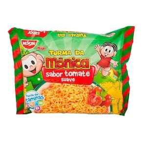 MACARRÃO INSTANTÂNEO NISSIN TURMA DA MÔNICA Instantâneo, vitaminado e com tempero suave. Assim é o Nissin Lámen Turma da Mônica, uma opção gostosa e divertida para quem em muita historinha para contar. Prove todos. Macarrão instantâneo o feito especialmente para as crianças. Tempero com sabor suave e massa vitamina. Três sabores: Galinha, carne e tomate. Modo de preparo: No fogão: 1. Ferva 450 ml de água. 2. Junte a massa e cozinhe por 3 minutos. Mexa para soltar os fios. 3. Retire do fogo e misture o tempero. 4. Está pronto seu miojo! Se desejar misture verduras á gosto! No Microondas: 1. Coloque 450 ml de água e a massa em um recipiente próprio para microondas. 2. Leve ao forno microondas em potência alta por 5 min, interrompendo na metade do tempo para mexer. 3. Retire do microondas, misture o tempero e sirva em seguida.