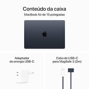 Apple MacBook Air 15" (Chip M3 da Apple, CPU de oito núcleos e GPU de dez núcleos, 8GB Memória unificada, 512 GB) - Meia-noite